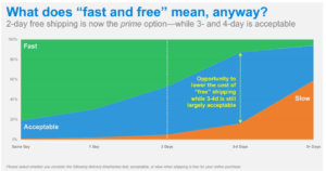 For the past few years, the common wisdom when it comes to eCommerce delivery has been “customers want fast and free”. While you’re unlikely to find a lot of customers who prefer to pay for shipping and receive their packages later rather than sooner, there’s certainly a gap between “fast and free” and what most shoppers find to be acceptable in terms of shipping cost and timing. The million (or more) dollar question is: how does an eCommerce seller strike the right balance between shipping cost, timing, customer requirements, and shipping budget?